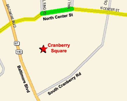Cranberry Square is located at the intersection of Baltimore Boulevard (Route 140) and North Center Street in Westminster, Maryland. Cranberry Square is a 140,213 square foot shopping center anchored by Giant, Jos. A. Bank, Pier One Imports, Staples, and Party City.