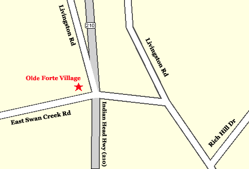 Olde Forte Village is located at the intersection of Indian Head Highway (MD Route 210) and East Swan Creek Road, Prince George's County, Maryland, approximately five (5) miles south of the Capital Beltway.